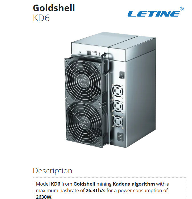 | Goldshell KD6 | Kadena | 2630W | 8.5KG | 200 x 264 x 290mm |